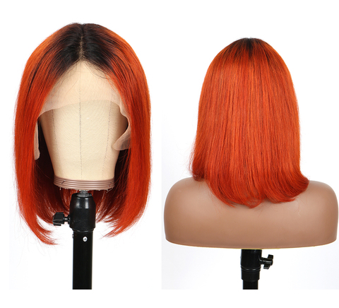 カラーボブウィッグレースフロントボブウィッグレッドブラック13x4レミー人間の髪の女性ストレートインドの髪未処理のバージンレミーの髪